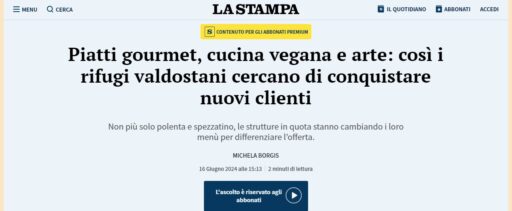 La Stampa Aosta ci ha dedicato parte di un bellissimo articolo sui rifugi alpini che, come il nostro, cercano di proporre non solo i soliti grandi classici come polenta e salsiccetta ma anche qualcosa di un po' più fantasioso e ricercato. La nostra filosofia è, per quanto possibile, quella di utilizzare prodotti locali e di qualità. E questa estate abbiamo un sacco di nuove idee da proporvi, vedrete che non rimarrete delusi. Grazie a la Stampa Aosta per questa bella presentazione!